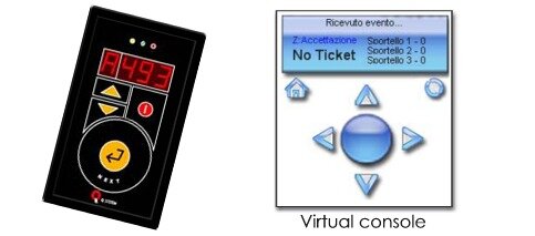 Console di chiamataConsole da tavoloDispositivo da tavolo da cui l'operatore chiama il numero di chiamata progressivo per l'utente. La console è dotata di LED a 3 cifre + lettera ( per indicare il servizio chiamato)Console virtualiLe console virtuali hanno le medesime funzioni di quelle da tavolo, ma al posto di essere un dispositivo cablato è un software installato su PC che permette all'operatore tramite mouse di effettuare tutte le operazioni di chiamata e cambio servizio.