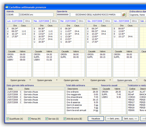 Calcolo automatico delle ore di straordinario, con elaborazioni giornaliere, settimanalai, mensili o periodiche.