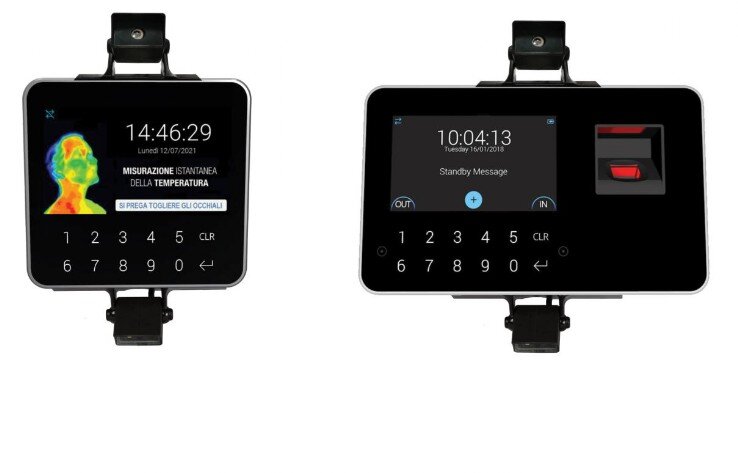 Green Pass + TemperaturaAl controllo del Green Pass è possibile abbinare anche il controllo della temperatura.In questo caso è necessario dotare il terminale anche del termoscanner, di seguito due esempi: