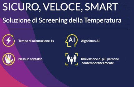 • Tempo di rilevazione 1 secondo• Rilevazione di più persone contemporaneamente• Misurazione a distanza senza contatto fisico• Allarme per il personale con temperature superiori a quella impostata• Precisione 0,5 gradi
