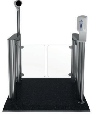 Questa soluzione può essere dotata di un montante dotato di dispenser per disinfettante per le mani nelle versioni sia manuale che automatico senza contatto e, un sistema di rilevamento della temperatura.